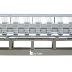Bordadeira automática de 12 cabeças e 12 agulhas com área de trabalho de 400 × 680 mm.